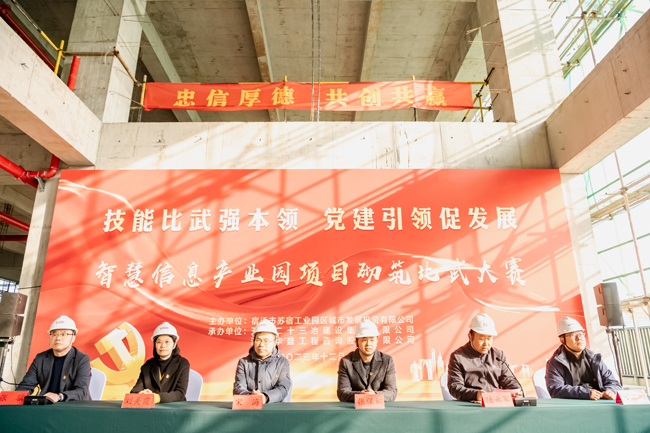 12月6日下午,園區(qū)智慧信息產(chǎn)業(yè)園開展“技能比武強(qiáng)本領(lǐng) 黨建引領(lǐng)促發(fā)展”主題的砌筑比武活動,園區(qū)機(jī)關(guān)及直屬單位黨委副書記、管委會辦公室副主任宋海、園區(qū)國資國企黨委副書記、財政局副局長張保桐、園區(qū)規(guī)劃建設(shè)局副局長劉美霞、園區(qū)建設(shè)工程質(zhì)量安全監(jiān)督站副站長方東、城發(fā)公司管理層及全體黨員、智慧信息產(chǎn)業(yè)園項(xiàng)目參建團(tuán)隊參加本次活動,六組參賽隊伍分工明確,人員緊密配合,經(jīng)過激烈角逐,又快又好完成樣式圖案砌筑,決勝出綜合排名前三的隊伍,并為獲獎隊伍頒發(fā)獎品。