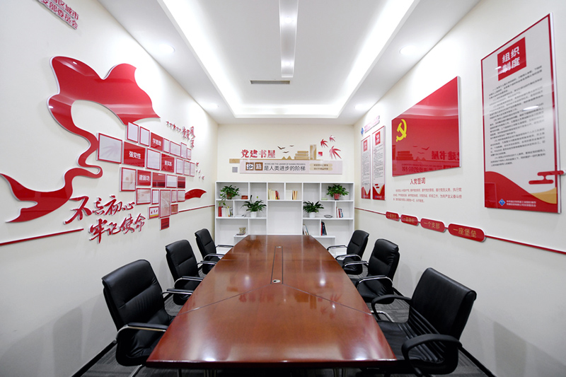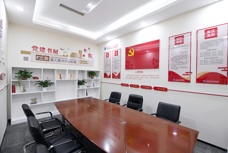 城發(fā)公司黨支部以“規(guī)范、節(jié)儉、實用”為目標,對原會議室進行了科學(xué)設(shè)計和規(guī)劃,滿足公司黨員職工學(xué)習(xí)、會議需要,并配置書架存放多種類黨建書籍、管理書籍以及日常學(xué)習(xí)活動資料,全方位為黨建工作開展活動創(chuàng)造條件和溫馨的環(huán)境,實現(xiàn)了“一室多用”的效果。