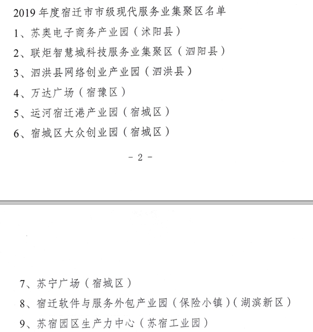 蘇宿園區(qū)生產(chǎn)力中心成功創(chuàng)成宿遷市市級現(xiàn)代服務業(yè)聚集區(qū)