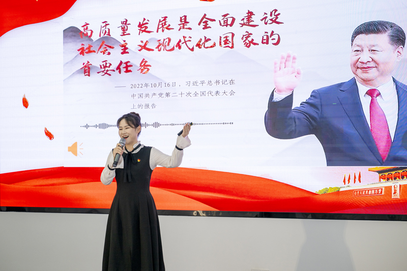 宣講比賽中,她聲情并茂,講述了園區(qū)十八年的發(fā)展歷程。從一片荒蕪之地的園區(qū)到高樓林立的現(xiàn)代化園區(qū),這十八年承載著園區(qū)人的奮斗精神,她說:“要深入學(xué)習(xí)貫徹黨的二十大精神,以青年人的責(zé)任與使命擔(dān)負(fù)起園區(qū)發(fā)展重任,‘二次創(chuàng)業(yè),再燃激情’,為拓園發(fā)展貢獻(xiàn)自己的青春與力量。”