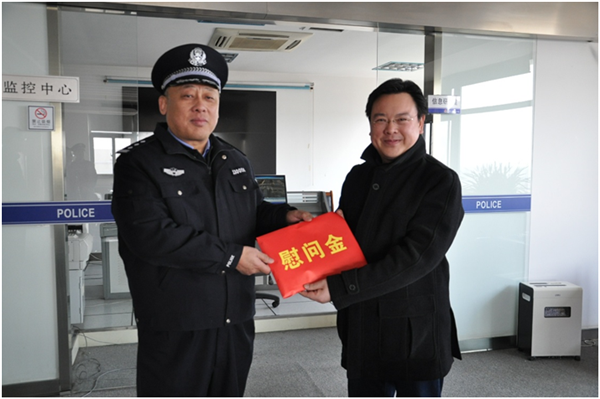 在園區(qū)公安分局,方文浜先后參觀了園區(qū)派出所、公安分局辦公區(qū)和園區(qū)治安監(jiān)控中心,對園區(qū)公安分局的工作表示了肯定,對分局各位干警的辛勤奉獻表示感謝,并送上了慰問金。