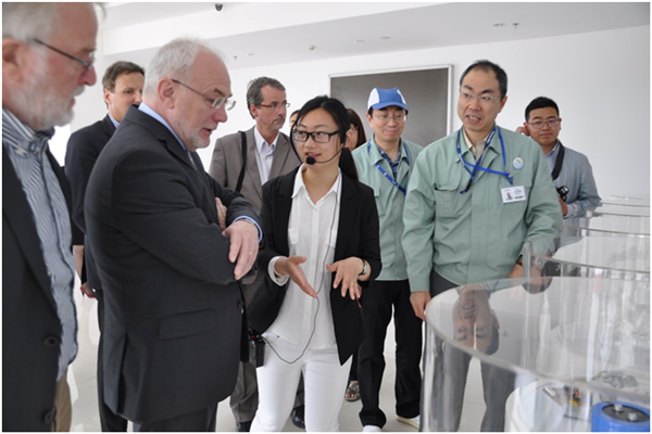 在尼吉康公司,南出智嗣董事長仔細(xì)為代表團(tuán)介紹了企業(yè)發(fā)展歷史、產(chǎn)品性能等情況,并饒有興趣地交流起各自的工作、生活。日語、德語、英語、中文夾雜在一起,加上雙方豐富的肢體語言,熱烈不已。南出董事長說,很享受在宿遷的工作、生活,每天在園區(qū)都可以品嘗到可口的日本料理,周末可以到市區(qū)品嘗星巴克,味道很不錯(cuò)。他還熱情邀請羅特先生一起品嘗。羅特對尼吉康公司的熱情接待表示感謝,他表示,此次園區(qū)之行雖然時(shí)間短暫,但給他留下了尤為深刻的印象,期望南出董事長等到德國做客。