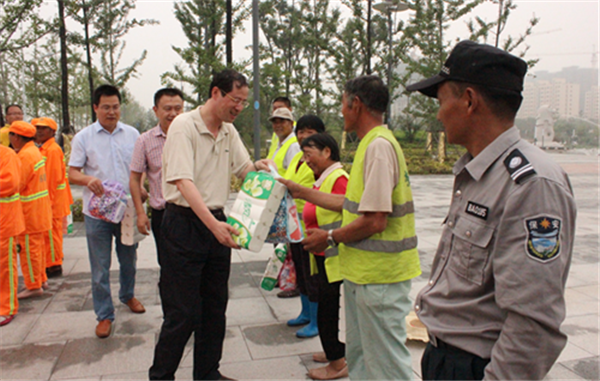 園區(qū)城管局有關(guān)負責人陪同慰問,并為環(huán)衛(wèi)工人分發(fā)了防暑降溫用品。