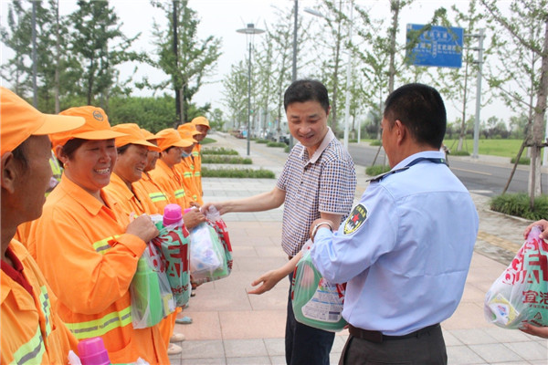 6月29日上午,園區(qū)黨工委委員、管委會(huì)副主任、規(guī)劃建設(shè)局局長許紹杰帶隊(duì),親切慰問了奮戰(zhàn)在一線的城市維護(hù)作業(yè)人員,給他們送去了夏日里的問候和黨的關(guān)懷,感謝他們?yōu)閳@區(qū)的整潔、優(yōu)美城市環(huán)境所作出的貢獻(xiàn)。
